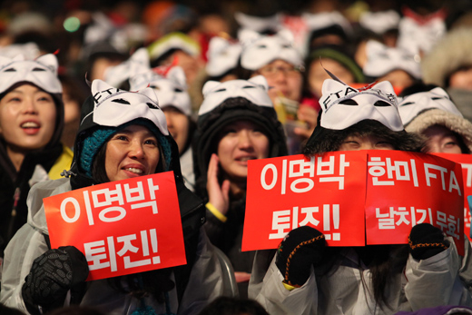 한미 FTA 반대 촛불집회가 의존하는 <나꼼수>는 현재 '반MB' 정서에 기대고 있다. FTA가 주연이 아니라 '가카'가 주제다. 유효기간은 내년까지다. 다음은? 안철수 또는 문재인인가, 진보정당인가. 통합인가 정책인가. 전자의 가능성이 높아 보이며, 후자가 더 떠오를 가능성은 낮아 보인다. 복지의 정도는 어디까지인가. 토지공유제는 우리가 용인하기 불가능한 문제일까, 아닐까. 대체 군복무제는 중요한 문제일까, 아닐까.