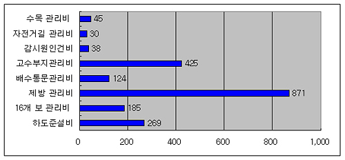 | ▲국토연구원이 추정한 국가하천 유지관리비(억 원/년) ⓒ홍헌호 |