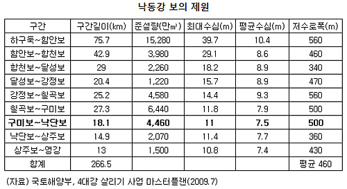 | ▲낙동강 보의 제원. ⓒ홍헌호 |