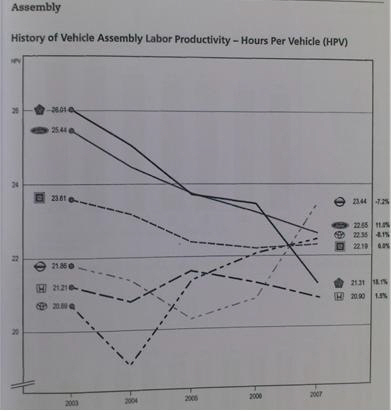 깊이 파고들어가면 더 놀라게 된다. 하버 리포트는 GM의 HPV는 얼마, 포드의 HPV는 얼마… 이런 식의 비교를 거의 하지 않는다는 점이다. 그 대신 GM의 플린트 공장에서 생산되는 어떤 차종의 HPV는 얼마, 도요타의 조지타운 공장의 제 1라인에서 생산되는 차종의 HPV는 얼마, 제 2라인의 HPV는 얼마… 이런 식의 데이터를 제공한다.