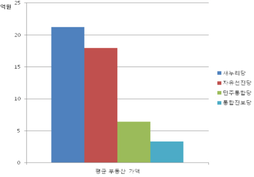 〈그림1〉 정당별 평균부동산 가액 그래프