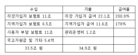 | ▲ 2010년 건강보험 재정 수입 지출 내역 |