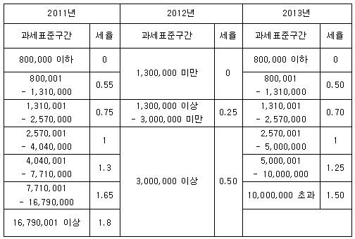 | ▲ 부유세의 과세구간과 과세세율 (단위 : 유로, %) |