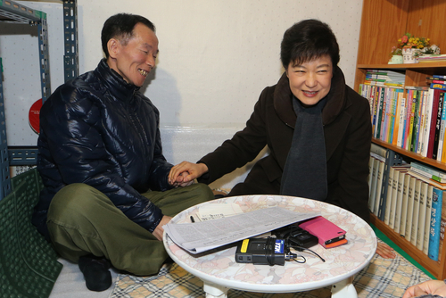 | ▲ 2012년 12월 24일 기초생활수급자를 찾은 박근혜 대통령 당선인 ⓒ연합뉴스 |
