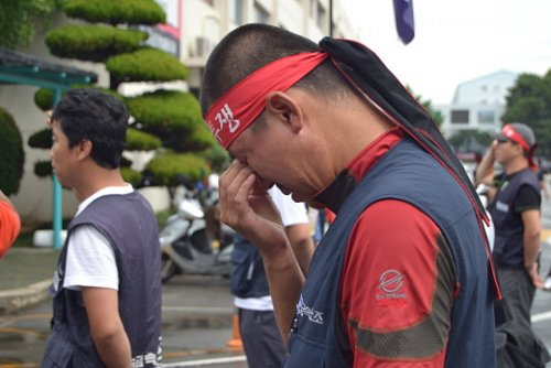 | ▲ 현대차 정규직 노조가 회사의 신규 채용안을 수용할 뜻을 내비치자 눈물을 흘리는 비정규직 노조 간부. ⓒ프레시안(김윤나영) |