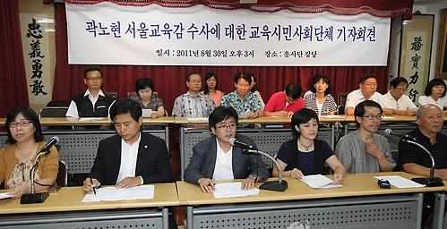 이번 사안이 터지기 이전까지 우리사회를 걱정해 온 지식인들이나 시민사회단체들은 곽 교육감에 대한 전폭적인 신뢰를 보냈다. 곽 교육감이 법학 교수 시절 보여준 깨끗하고 도덕적인 이미지와 삼성그룹 편법승계의 부당성을 알린 '스톱 삼성' 운동을 통해 반부패 전사로 일했던 곽 교육감의 과거 행적이나 교육감이 되고 난 이후의 교육개혁에 매진하는 교육감으로의 그에 대한 역할에 대한 믿음은 비록 검찰 소환이 임박했다 하여도 가볍게 철회될 문제는 아니다. 수도 서울의 교육수장이라는 자리가 너무나 중요하기 때문에라도 곽 교육감에 대한 믿음은 애초에 교육감으로 뽑았던 그 원칙으로부터 더 존중되어야 한다.