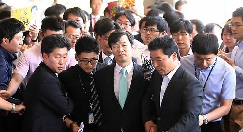 | ▲ 지난 6일 전날에 이어 서초구 거울중앙지검에 재출석하고 있는 곽노현 교육감 ⓒ연합 |