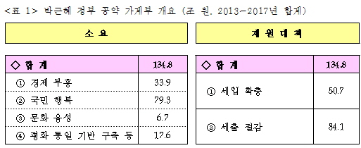 | ▲ 출처: 기획재정부, "박근혜 정부 국정 과제 이행을 위한 재정 지원 실천 계획 '공약가계부' 발표" (2013. 5. 31) |