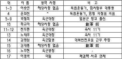 도대체 MB정권은 왜, 이처럼 턱도 없는 결정을 내린 것일까? 여기서 잠깐 국군 최고통수권자인 역대 대통령의 병역 기록을 살펴보자.