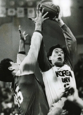 | ▲ 1990년 올스타 농구 연고 OB전에 고대 올스타로 뛰고 있는 이충희 감독(오른쪽) ⓒ연합뉴스 |