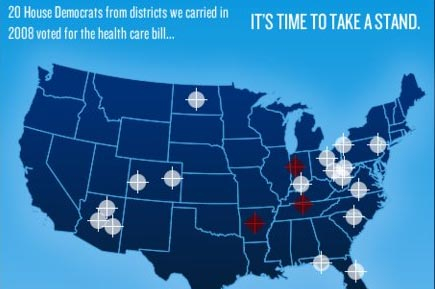 | ▲ 페일린 전 주지사가 작년 중간선거 전 자신의 페이스북에 올려 놓은 살생부 지도 |