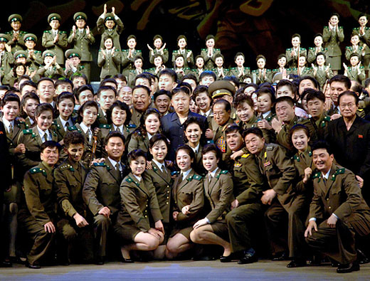 | ▲ 지난해 7월 26일 김정은 국방위원회 제1위원장이 평양의 봉화예술극장에서 '조국해방전쟁승리 59돌 경축 조선인민내무군협주단 공연'이 끝난 후 출연자들과 기념사진을 찍고 있다. ⓒ조선중앙통신=연합뉴스 |