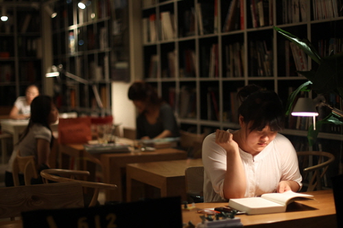 | ▲ 한 여성이 북카페에서 독서 삼매경에 빠져있다. ⓒ프레시안(최형락) |