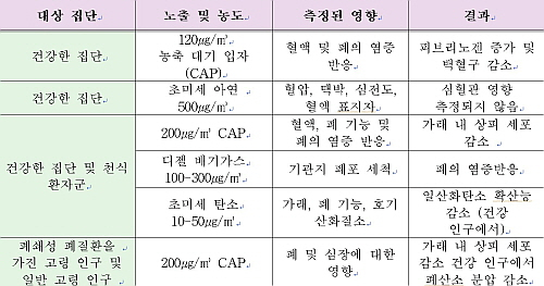| ▲ 건강 집단별 PM 2.5 인체 영향 수준. ⓒ국립환경과학원 |