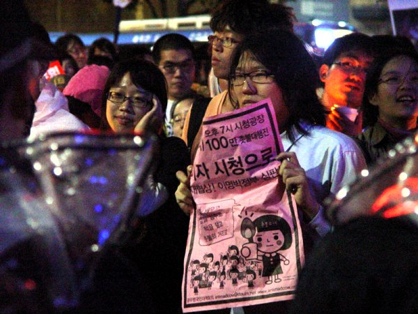 모의고사를 마치고 3명의 친구와 함께 참석한 고등학교 3학념 김이슬(가명) 양도 "어이가 없어서 웃음 밖에 안 나온다"고 일갈했다. 그는 "지금 인터넷에 떠도는 소문 중에 많이 과장된 말도 있다는 건 인정하지만 시민들의 불안에는 이유가 있다"며 "아무리 1%라고 해도 시민의 안전에 위험이 있으면 막아야 하는 게 정부의 역할이 아니냐"고 되물었다.