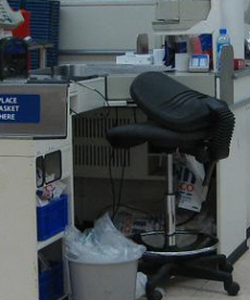| ▲ 접고 펴는 등받이가 달린 맨체스터 한 대형 할인점의 계산대 의자. ⓒ프레시안 |