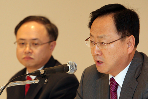 | ▲ 쌍용차의 이유일, 박영태 공동관리인은 이날 서울 르네상스호텔에서 기자 간담회를 갖고 "8일 이후 합법적 수단을 통해 퇴거 명령이 이뤄지도록 할 계획"이라고 밝혔다. ⓒ연합뉴스 |