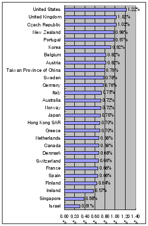 필자가 PWC(2008)를 입수해 정리하는 과정에서 처음 발견한 것은 우리나라의 GDP 대비 방송시장 비율이 0.92%로 IMF가 선정한 선진국 27개국 중에서 6번째로 높다는 사실이었다.