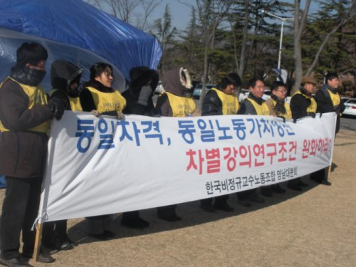 | ▲ 영남대 강사들은 20일간 대학 측과 힘겨운 싸움을 벌였다. 비정규직법 시행 등 이명박 정부 들어 시간강사들은 더 '벼랑 끝'에 몰렸다. ⓒ비정규직교수노조 영남대분회 |