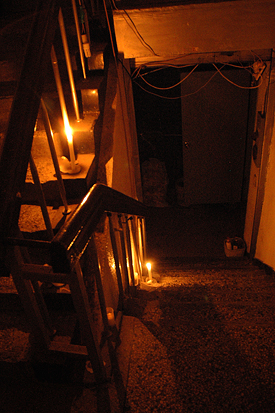 | ▲ 두리반 1층에서 2층으로 가는 계단에는 촛불이 켜져 있다. ⓒ프레시안 |