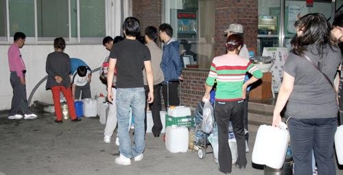 ▲ 지난 6월 단수사태로 경북 구미시 인동 주민들이 물 공급을 받기 위해 차례를 기다리고 있던 모습. ⓒ뉴시스 |