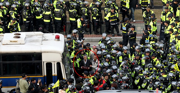 | ▲ 국회에 진입했다 연행되고 있는 백기완 소장. ⓒ연합뉴스 |