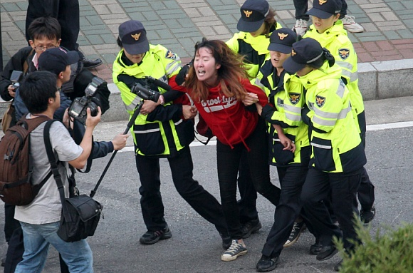| ▲ 국회에 진입했다 경찰에 연행되는 여학생. ⓒ연합뉴스 |