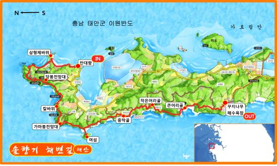 이날 총 10.2km를 점심시간과 충분한 휴식시간까지 포함, 5시간 가량 걷는데, 야산으로 완만하면서도 바닷가 솔바람 길이어서 행복하게 걷는 하루가 될 것입니다.