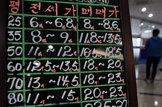 | ▲ 전국 아파트 전세가격이 68주 연속 올라 역대 최장 상승 기록 행진을 이어가고 있다. 서울의 아파트 전셋값은 송파, 서초, 강남 등이 0.26% 이상의 오름세를 보였다. 사진은 지난해 12월 22 일 오후 강남의 한 부동산 모습. ⓒ연합뉴스 |