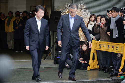 | ▲지난해 대선 후보단일화 협상 당시의 문재인, 안철수 의원. ⓒ프레시안(최형락) |