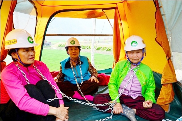 '청도 345kV 송전탑 반대 공동대책위원회'는 "삼평리 주민들이 송전탑 공사장 앞에 망루를 짓고 16일 오전 9시부터 송전탑 반대 무기한 고공농성에 들어갔다"고 17일 밝혔다. 현재는 주민 김춘화(64) 할머니와 대책위 활동가 손소희씨가 망루 위 텐트에서 쇠사슬을 두르고 고공농성을 벌이고 있다.