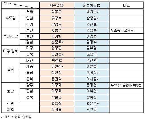 호남권을 제외한 새누리당 광역단체장 후보 전체로 보면, 서울(정몽준), 대구(권영진), 울산(김기현), 경기(남경필), 경남(홍준표), 충북(윤진식), 강원(최흥집), 제주(원희룡), 세종(윤진식) 등은 모두 비박계다. 특히 박 대통령의 정치적 고향으로 불리는 대구에서 친이계인 권영진 전 의원이 친박계 현역의원 2명을 꺾은 것은 일대 이변으로 꼽혔다.
