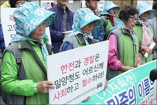 앞서 10일 대책위는 성명서를 내고 "민중의 생존권을 벼랑 끝으로 내몰고, 자연을 일방적으로 착취하는 밀양 행정대집행에 치떨리는 분노를 가눌 수 없다"며 "공권력이 밀양의 농성장을 무너뜨리기 위해 침탈하는 그 순간은 박근혜 정권의 몰락의 신호탄이 될 것"이라고 비판했다.
