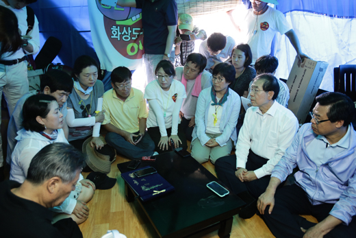 박 시장은 천막에서 주민들에게 "제가 예전에 부안 방사능폐기물처리장 찬반 논란이 있을 때 주민투표관리위원장이었다. 그땐 법적으로 주민투표를 할 수 없던 때였지만, 그런 식으로도 의사를 결정했다"며 "서울시 선관위와 이야기해보고, 서울시의회에서도 (의원들이) 발의하셔서 결의할 수 있으리라고 본다"고 했다.