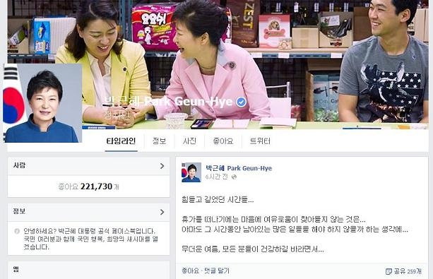 박 대통령은 이어 "휴가를 떠나기에는 마음에 여유로움이 찾아들지 않는 것은…"이라며 "아마도 그 시간 동안 남아있는 많은 일들을 해야 하지 않을까 하는 생각에…"라고 했다. 박 대통령은 "무더운 여름, 모든 분들이 건강하길 바라면서…"라고 글을 맺었다.