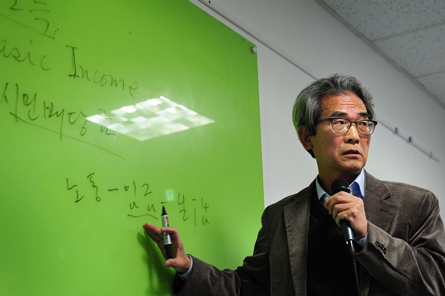 소득이라는 표현을 쓰니까 고정관념을 깨기가 참 힘들다. 왜 일도 하지 않는 사람에게 돈을 주느냐는 반발이 늘 따라다닌다. 권리 개념인 배당금이라는 표현을 쓰면 이런 문제가 없다."