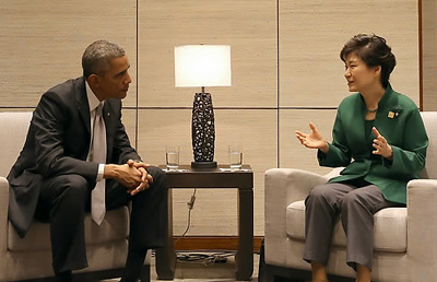 제22차 아시아태평양경제협력체(APEC) 정상회의 참석차 중국 베이징을 방문 중인 박근혜 대통령은 11일 오후 버락 오바마 미국 대통령과 정상회담을 가졌다.