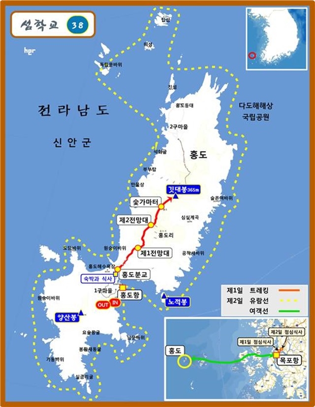 홍도분교-제1전망대-제2전망대-숯가마터-깃대봉(2km)-(유턴)-홍도분교