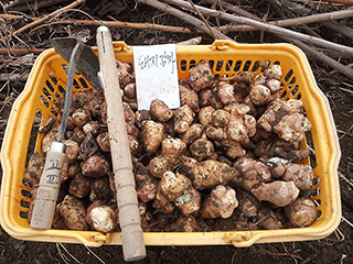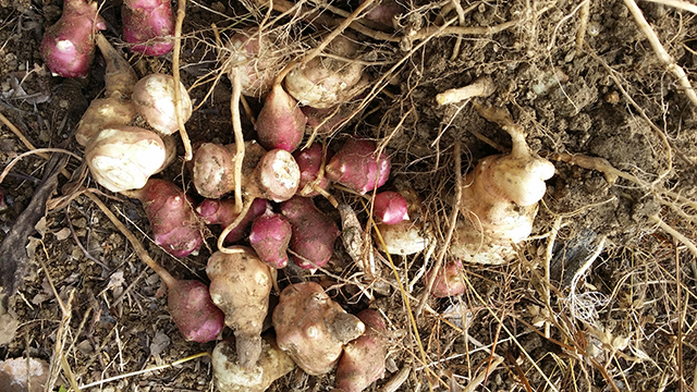 ▲ 흰색과 자주색이 섞여 있는 돼지감자. ⓒ김재광