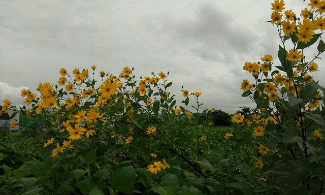 지난해에 풍신난 구산 노루뫼농장, 이른 봄에 캐고 난 자리 심지도 않은 돼지감자가 그야말로 태평 냅둬농법으로 자라 9월 중순부터 화려하게 변신을 했습니다.