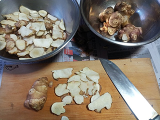 추운 겨울철을 보내고 캐낸 돼지감자라야 좋습니다. 돼지감자의 약효는 추운 겨울을 보내고 나서 얇게 썰어 생으로 먹는 것이 최고입니다.