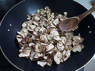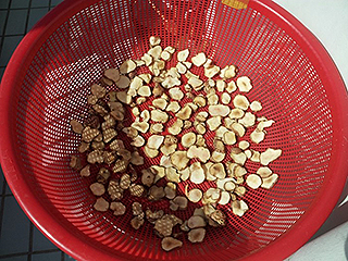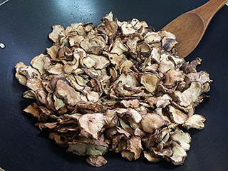 자연 건조 시작 9일째 되는 날, 커다란 팬에 넣어 중불-약불 옮겨가며 시나브로 노릇노릇 변할 때까지 복습니다.('덖는다'는 표현도 있더군요.)