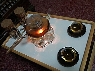 5. 상온에서 세 시간쯤 식힌 뒤 열이 완전히 빠진 상태에서 밀폐된 유리병에 넣어 열 시간 이상 더 숙성시킨 뒤 차로 마신다. 그냥 말려서 먹어도 좋지만 덖으면 맛과 향이 좋아지고 혹시 모를 위험도 예방하며 중화할 수 있어 좋다고 한다. 다 마신 찻잎은 말려 요리나 샐러드에 넣어도 좋다.(2015년 1월 은여울)