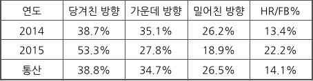 지금까지 당겨치기로 흥한 선수를 살펴봤다면, 이번에는 당겨치기를 버리고 밀어치기를 택해 성공을 거두고 있는 선수들을 살펴볼 차례다.