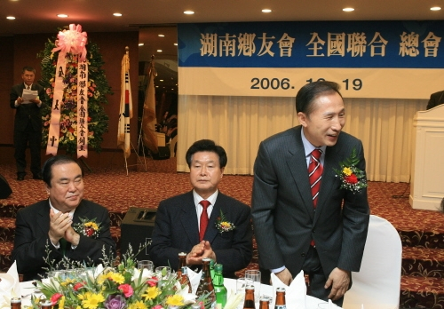 | ▲ 지난해 연말 호남향우회 전국연합 중앙행사에 참석한 이명박 후보ⓒ연합뉴스 |