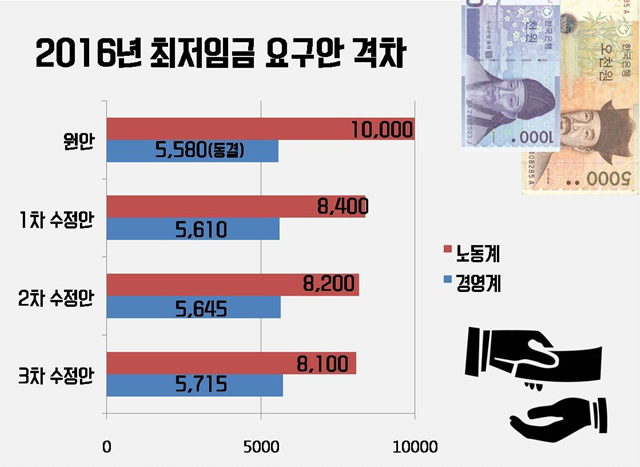 18년 만에 총파업을 예고한 한국노총은 "(450원 인상은) 4500원 짜리 담배 두 개비 가격"이라며 이번 인상 폭을 강하게 비판했다. 당초 노동계는 '최저임금 1만 원' 요구해왔다.