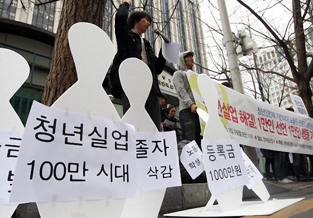 재벌이 경제를 좌지우지하고 대학진학률이 70~80%에 이르는 사회에서 청년들이 일자리를 얻는 방법은 중소, 영세기업에 취직해도 남부럽지 않아야 합니다. 정부 보고서에도 나오듯 중소기업 비정규직의 임금이 대기업 정규직의 35%에 불과한데 대기업과 전문직, 공공부문의 일자리가 전체의 15%에 불과하다면 청년들의 장기 실업, 또는 장기 취직 준비(스펙 쌓기)은 불가피하겠죠. 앞으로 에코세대(베이비붐 세대의 자녀 세대)가 끝난다 해도 지금처럼 청년들이 절망의 늪에서 헤맨다면 우리의 장래는 없습니다. 그래서 앞으로도 출산율이 세계에서 제일 빨리 떨어진다면 경제와 사회 자체가 유지될 수 없습니다.