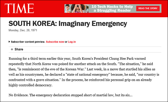 느닷없이 국가 비상사태 선언한 박정희…<타임> "상상적 비상"