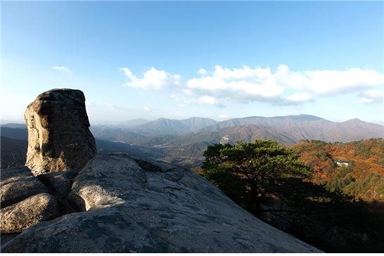 그 전각에는 적멸보궁처럼 부처님을 모시지 않은 채 손가락 만하게 보이는 이 바위를 올려다보고 절을 합니다. 곧, 예배의 대상인 것이다. 그것은 신라 진평왕 때부터 그랬는데, 587년, 진평왕 9년 난데없이 하늘에서 돌기둥이 내려왔답니다. 그 큰 돌기둥의 사면에는 여래가 새겨져 있었으며, 붉은 비단 보자기에 싸여 있었습니다. 왕이 그 소문을 듣고 사불산으로 바위를 찾아갔더니 과연 사면에 여래가 새겨진 바위가 산정에 세워져 있었습니다. 왕은 기이한 모습을 보고 예경을 올린 후 절을 창건했으니 지금의 문경 대승사가 바로 그 사찰입니다. 그로부터 산 이름을 역덕산(亦德山) 혹은 사불산(四佛山)이라고 불렀으며, 고려 때에는 공덕산(功德山)이라고도 불렀다고 전합니다.