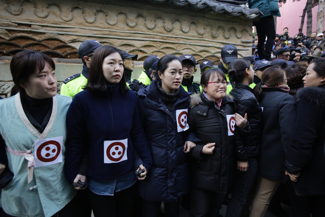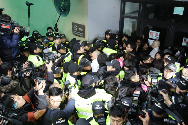 이렇게 경찰이 관음전 주위에 인력을 추가 배치하고 진열을 정비하는 사이, 조계종 측은 오후 5시 긴급 기자회견을 열었다.